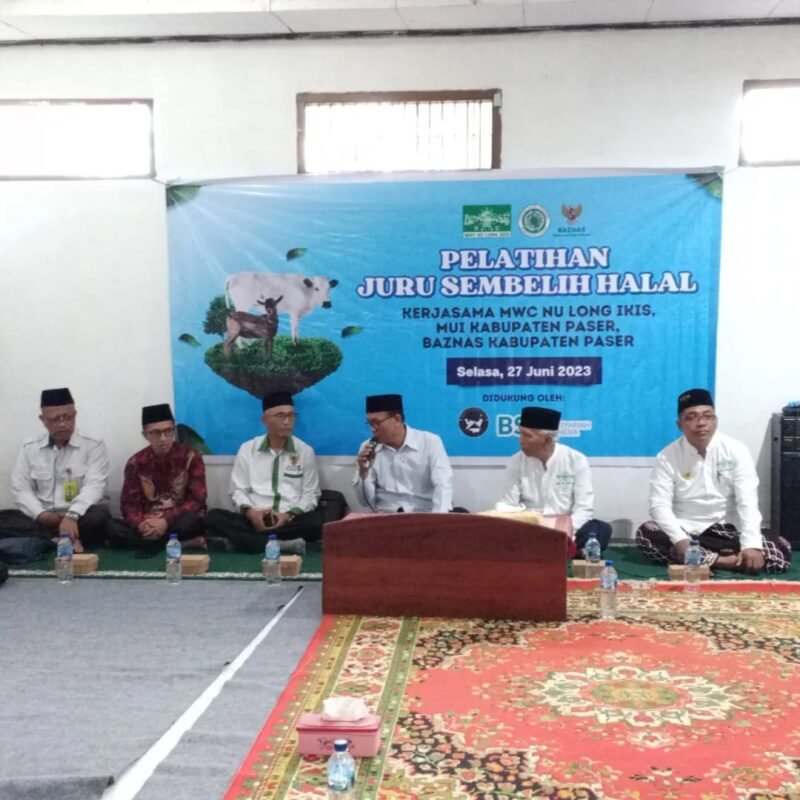 27 Juni 2023 – Pelatihan Juru Sembelih Halal. MUI Kabupaten Paser melalui Komisi Pendidikan dan Kaderisasi yang di ketuai oleh Ust Nashruddin Atha, Lc.,M.Pd.I membuka kegiatan pelatihan juru sembelih halal yang dilaksanakan di Desa Samuntai Kecamatan Long Ikis. Kegiatan ini merupakan hasil kerjasama dan koordinasi antara MUI Kabupaten Paser, BAZNAS Kabupaten Paser, dan MWC NU Long Ikis. Kegiatan ini diharapkan menjadi awal terbangunnya Rumah Penyembelihan Hewan bersertifikat halal di Kabupaten Paser, serta memberikan edukasi kepada masyarakat akan pentingnya penyembelihan hewan yang sesuai dengan syariat Islam sehingga terciptanya makanan yang halalan toyyiban. Selasa. 27 Juni 2023.